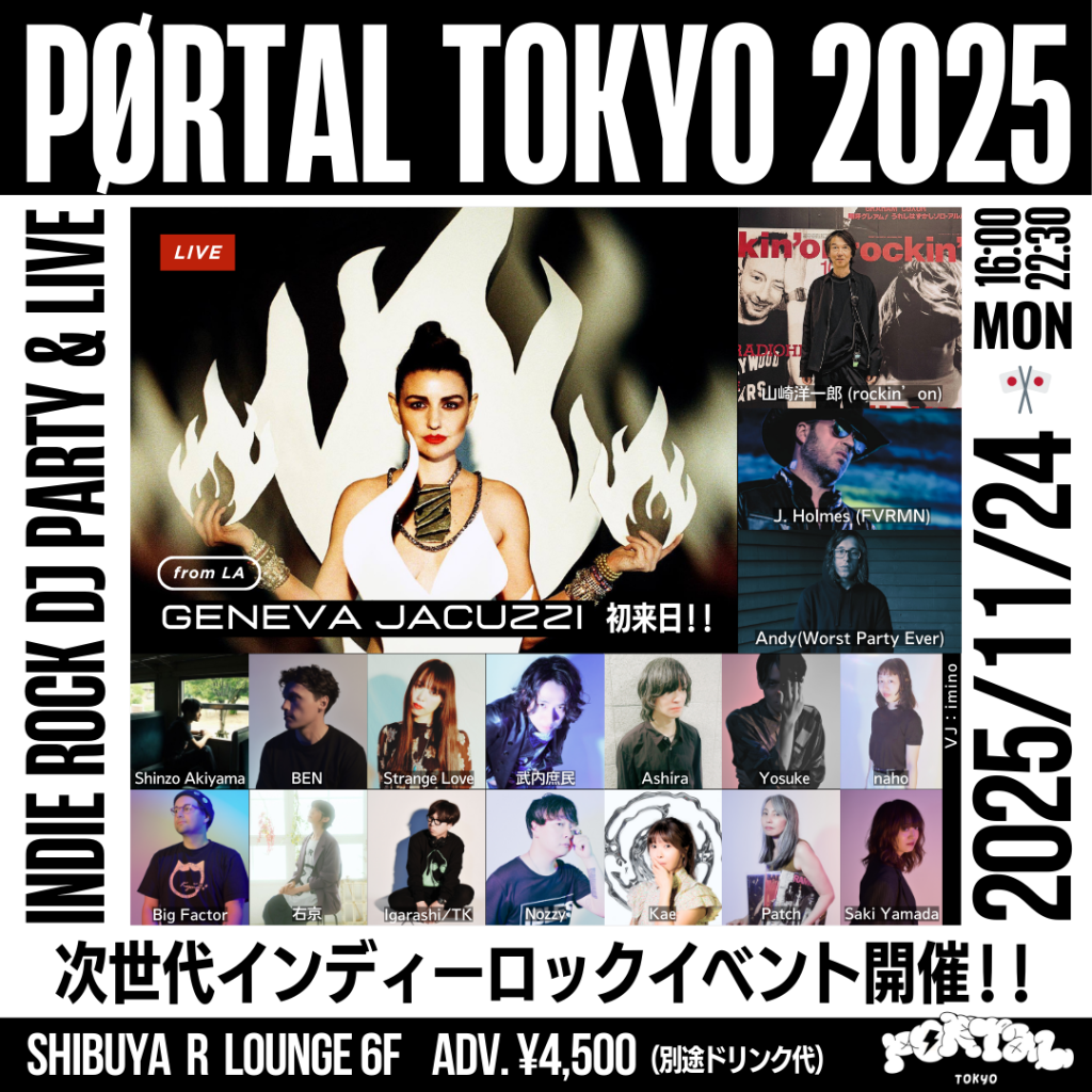 PØRTAL: PØRTAL(ポータル)はインディーロック、オルタナティブロック、ポストパンク、そしてインディースリーズやアンダーグラウンドな音楽シーンにフォーカスするコレクティブ。DJパーティーをプロデュースし、イベントとZINE『PØRTAL』を通じて、独自の音楽体験を提供しています。東京と福岡を拠点にDJイベント『PØRTAL』、海外からアーティストを招聘してのライブイベント『INTO THE PØRTAL』を開催。PØRTALのイベントは音楽を愛するすべての人に開かれた空間を提供しています。